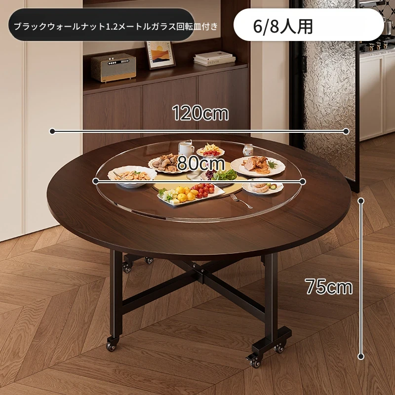 ウォールナット模様-ガラス天板付き1.2メートル【推奨6-8人】【防汚耐摩】【安定して崩れない】