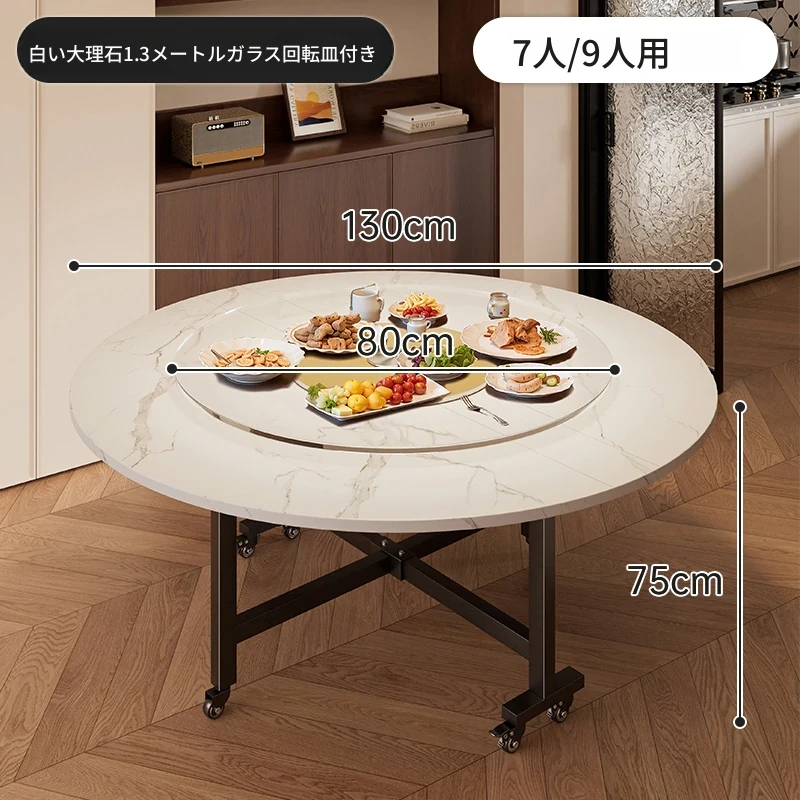 ホワイト大理石模様-ガラス天板付き1.3メートル【推奨7-9人】【防汚耐摩】【安定して崩れない】
