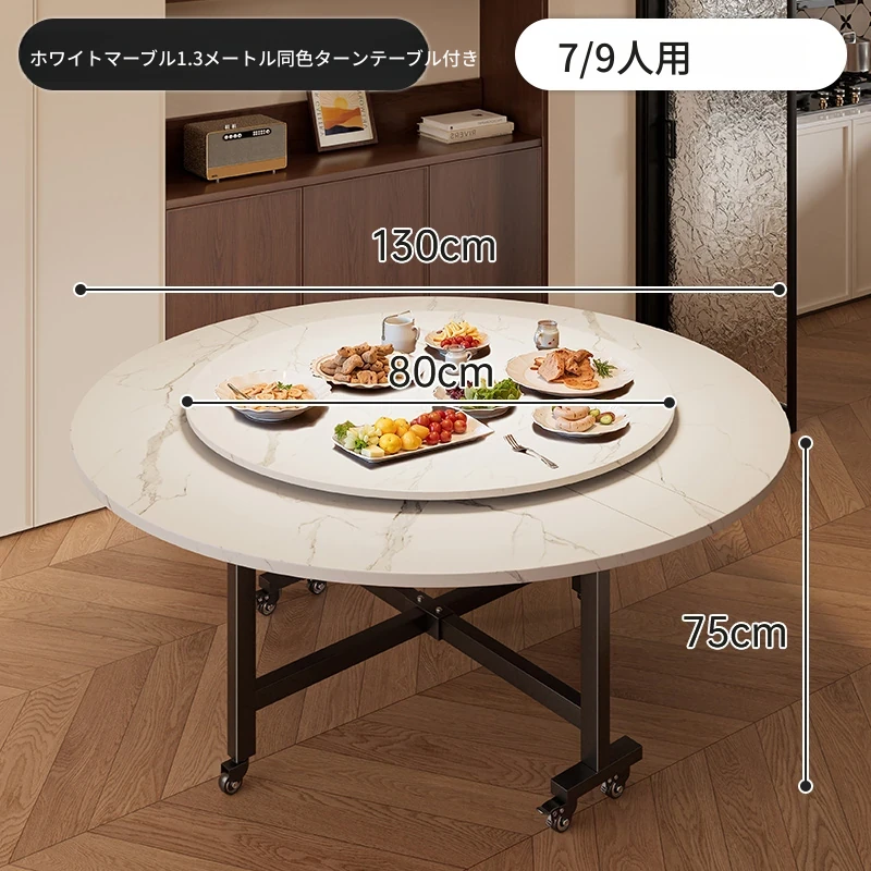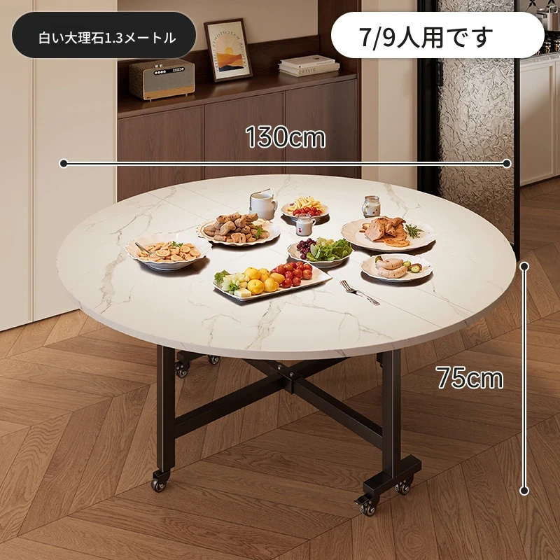 ホワイト大理石模様-単体テーブル1.3メートル【推奨7-9人】【防汚耐摩】【安定して崩れない】
