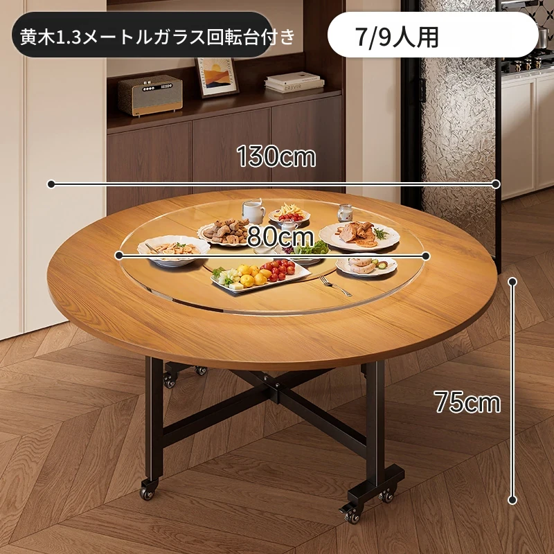 イエローペア模様-ガラス天板付き1.3メートル【推奨7-9人】【防汚耐摩】【安定して崩れない】