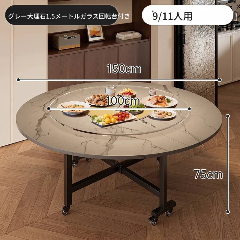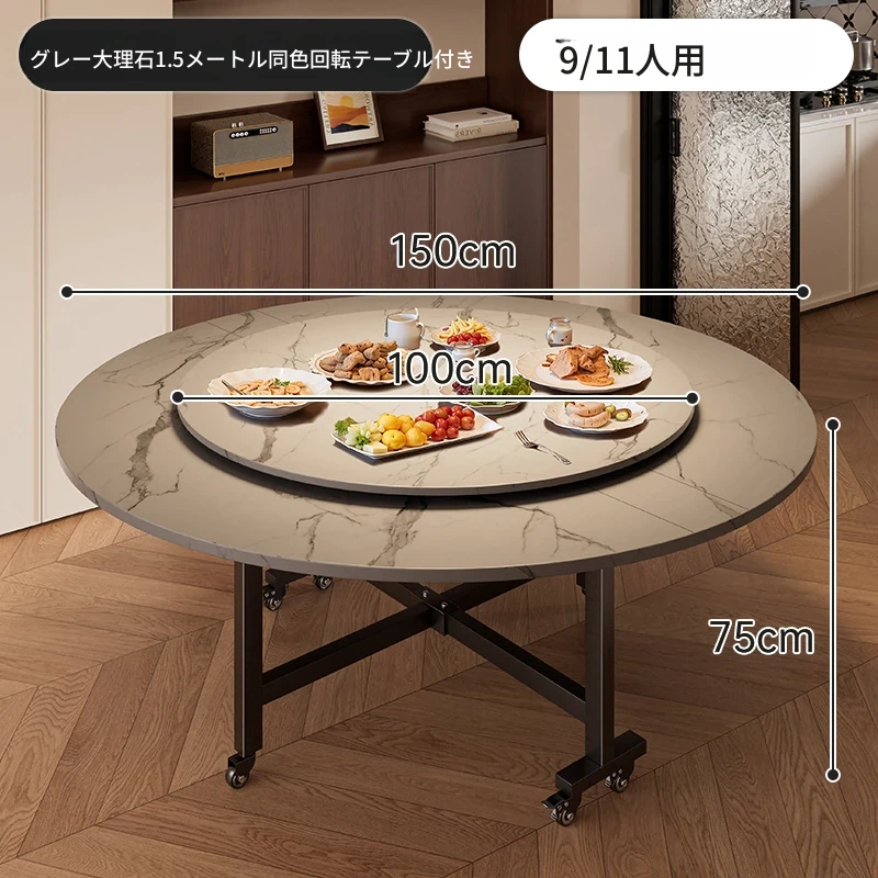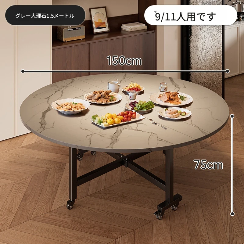 グレー大理石模様-単体テーブル1.5メートル【推奨9-11人】【防汚耐摩】【安定して崩れない】