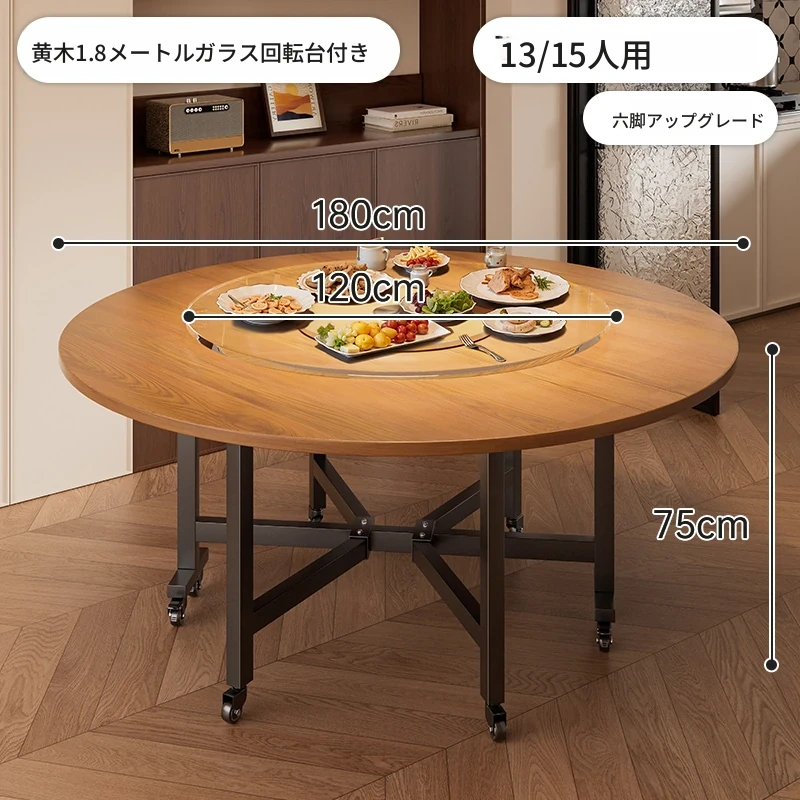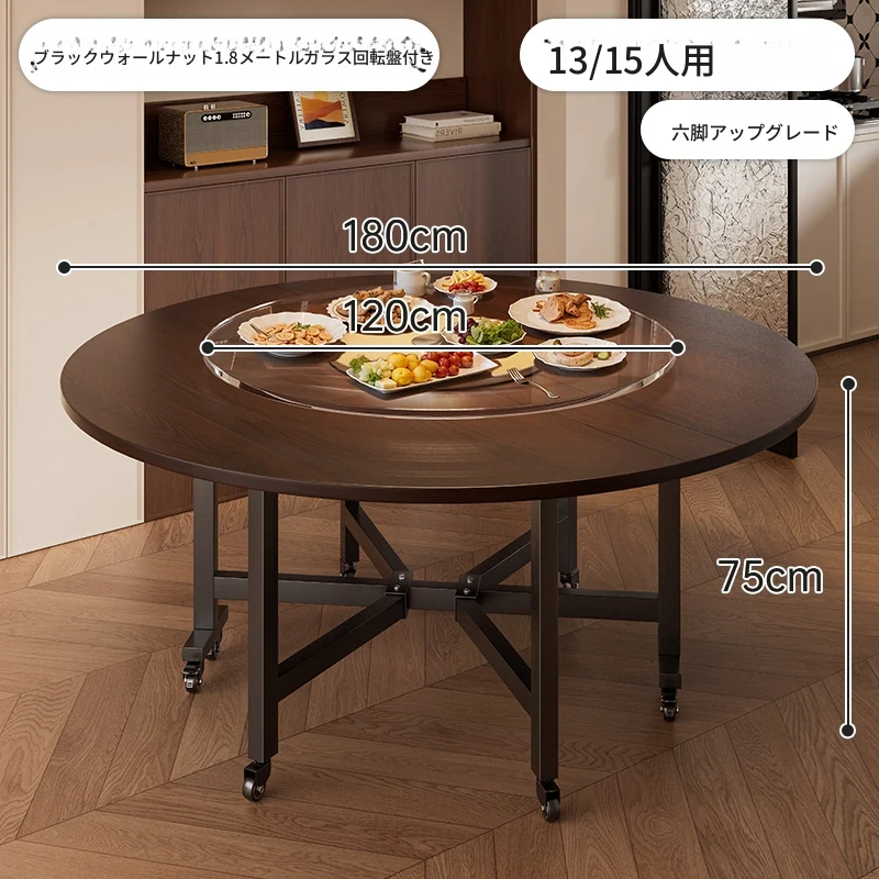 ウォールナット模様-ガラス天板付き1.8メートル【推奨13-15人】【防汚耐摩】【安定して崩れない】