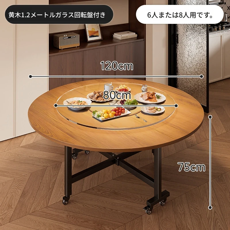 イエローペア模様-ガラス天板付き1.2メートル【推奨6-8人】【防汚耐摩】【安定して崩れない】
