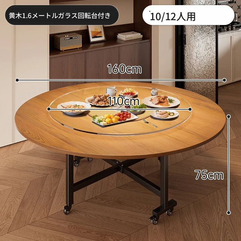 イエローペア模様-ガラス天板付き1.6メートル【推奨10-12人】【防汚耐摩】【安定して崩れない】