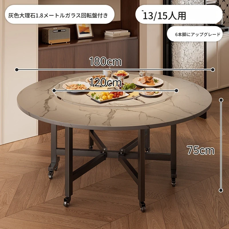 グレー大理石模様-単体テーブル1.8メートル【推奨13-15人】【防汚耐摩】【安定して崩れない】