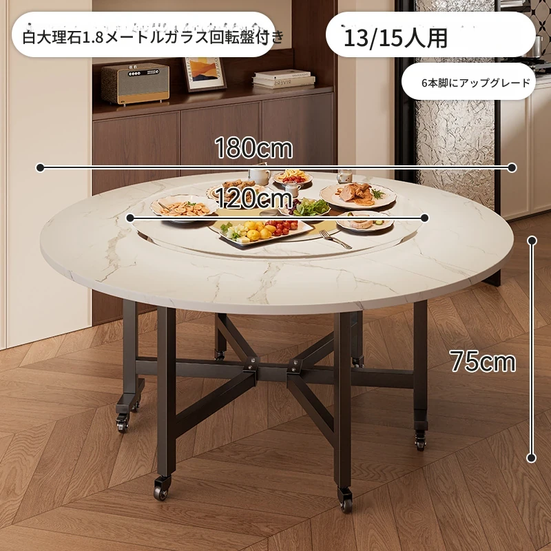 ホワイト大理石模様-ガラス天板付き1.8メートル【推奨13-15人】【防汚耐摩】【安定して崩れない】