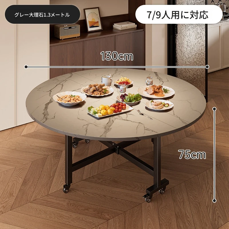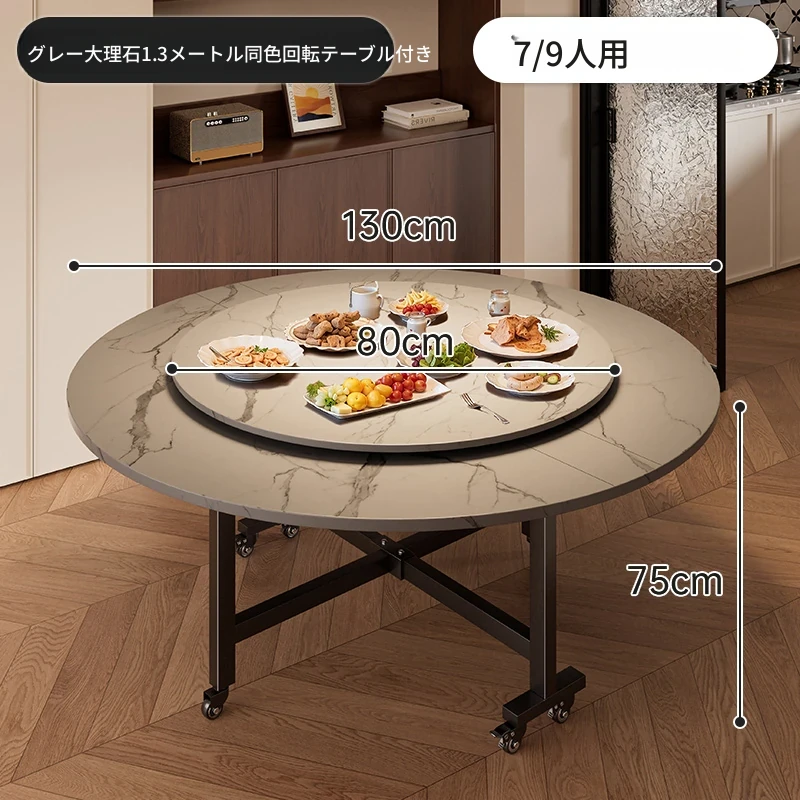 グレー大理石模様-単体テーブル1.3メートル【推奨7-9人】【防汚耐摩】【安定して崩れない】