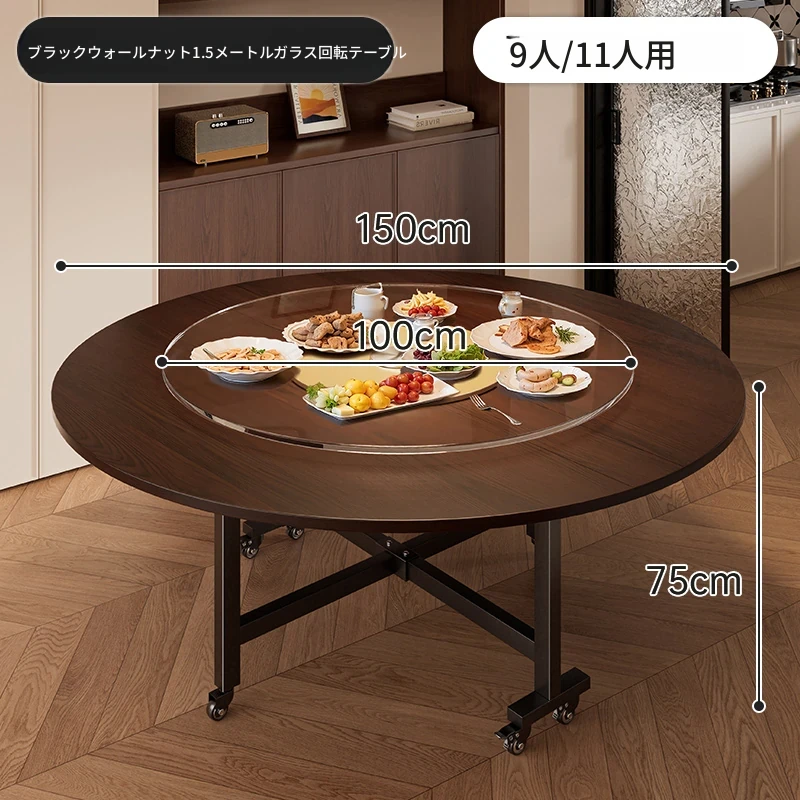 ウォールナット模様-ガラス天板付き1.5メートル【推奨9-11人】【防汚耐摩】【安定して崩れない】