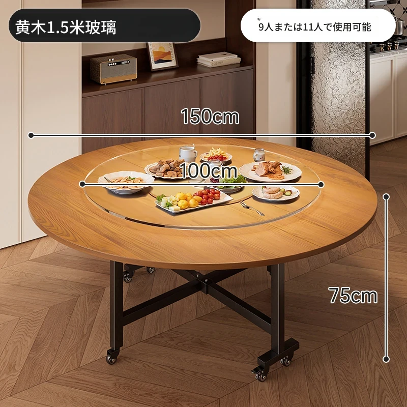 イエローペア模様-ガラス天板付き1.5メートル【推奨9-11人】【防汚耐摩】【安定して崩れない】