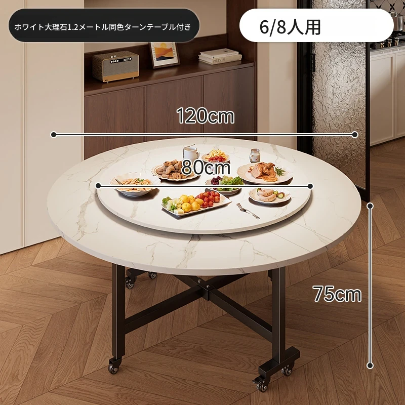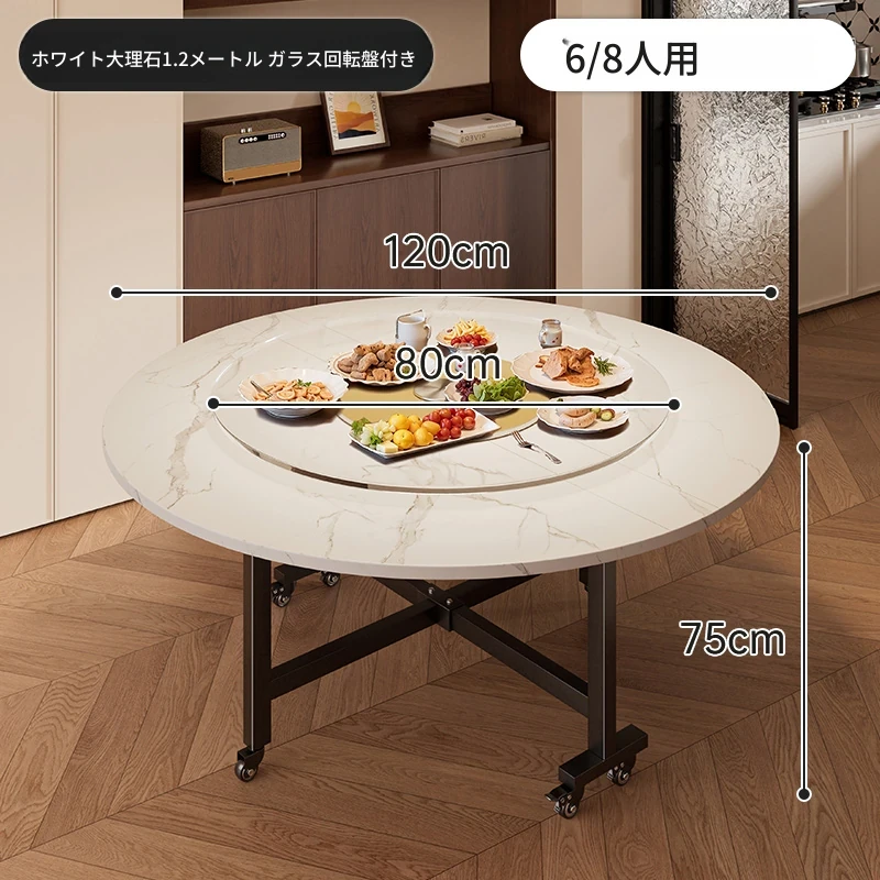 ホワイト大理石模様-ガラス天板付き1.2メートル【推奨6-8人】【防汚耐摩】【安定して崩れない】