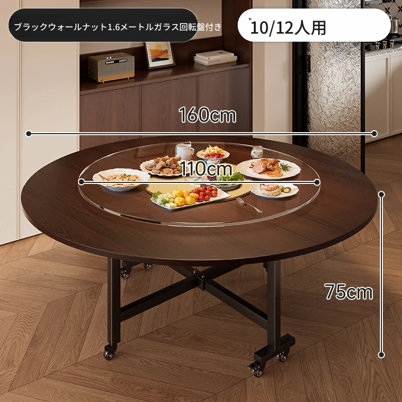 ウォールナット模様-ガラス天板付き1.6メートル【推奨10-12人】【防汚耐摩】【安定して崩れない】