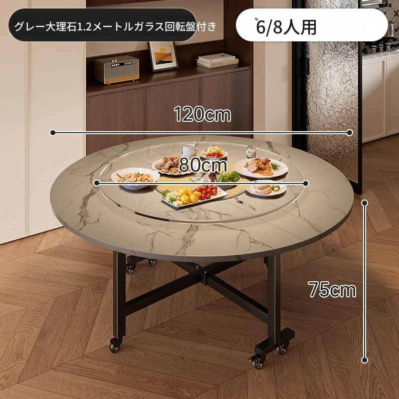 グレー大理石模様-ガラス天板付き1.2メートル【推奨6-8人】【防汚耐摩】【安定して崩れない】
