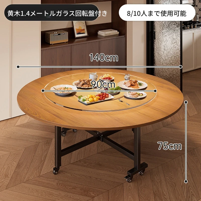イエローペア模様-ガラス天板付き1.4メートル【推奨8-10人】【防汚耐摩】【安定して崩れない】