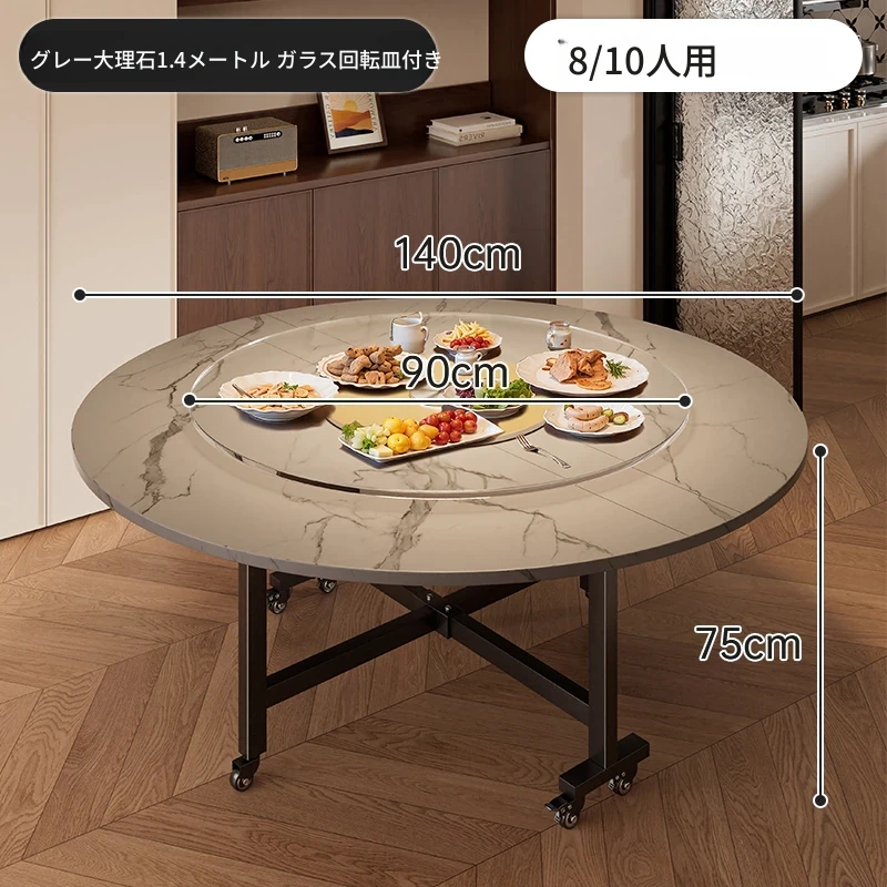 グレー大理石模様-ガラス天板付き1.4メートル【推奨8-10人】【防汚耐摩】【安定して崩れない】