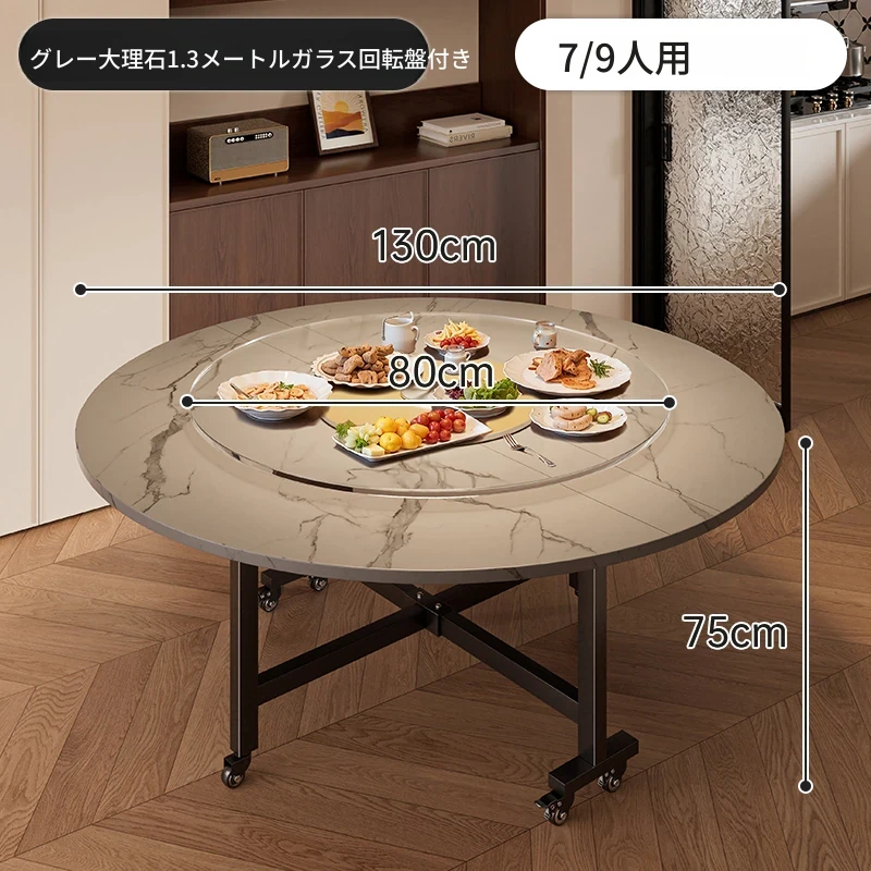 グレー大理石模様-ガラス天板付き1.3メートル【推奨7-9人】【防汚耐摩】【安定して崩れない】