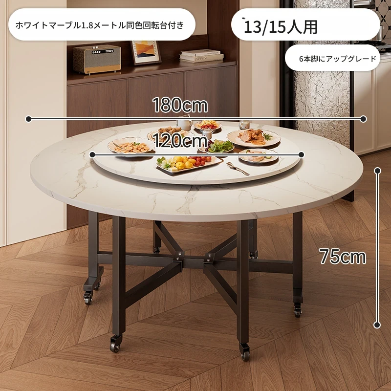 ホワイト大理石模様-単体テーブル1.8メートル【推奨13-15人】【防汚耐摩】【安定して崩れない】