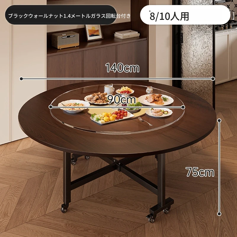 ウォールナット模様-ガラス天板付き1.4メートル【推奨8-10人】【防汚耐摩】【安定して崩れない】