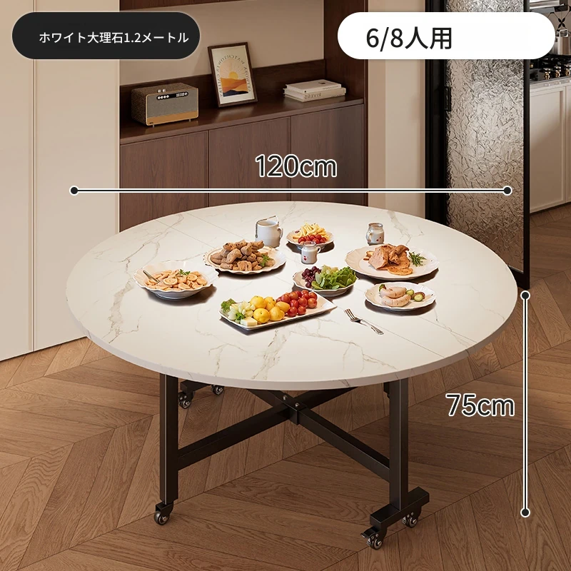 ホワイト大理石模様-単体テーブル1.2メートル【推奨6-8人】【防汚耐摩】【安定して崩れない】