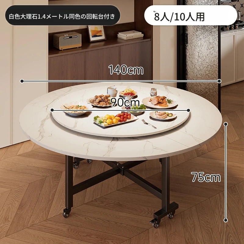 ホワイト大理石模様-同色天板付き1.4メートル【推奨8-10人】【防汚耐摩】【安定して崩れない】