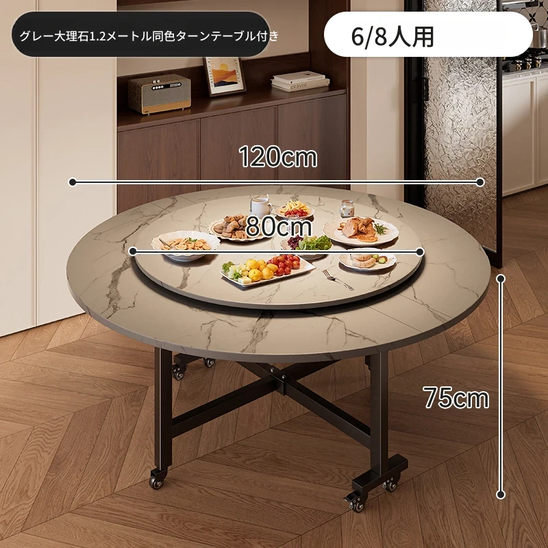 グレー大理石模様-同色天板付き1.2メートル【推奨6-8人】【防汚耐摩】【安定して崩れない】