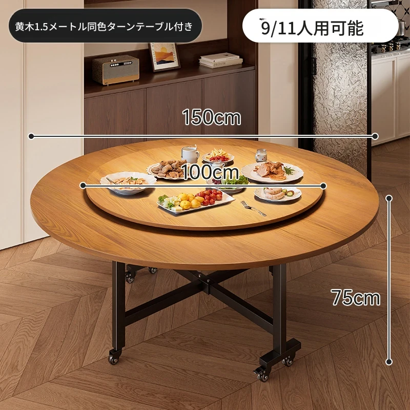 イエローペア模様-単体テーブル1.5メートル【推奨9-11人】【防汚耐摩】【安定して崩れない】