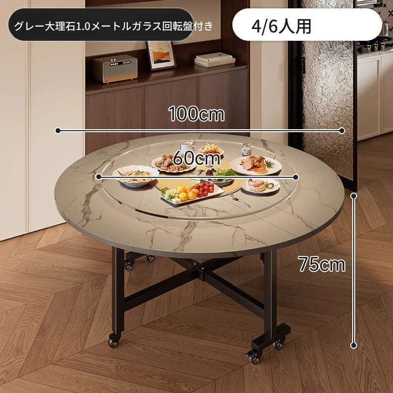 グレー大理石模様-ガラス天板付き1.0メートル【推奨4-6人】【防汚耐摩】【安定して崩れない】