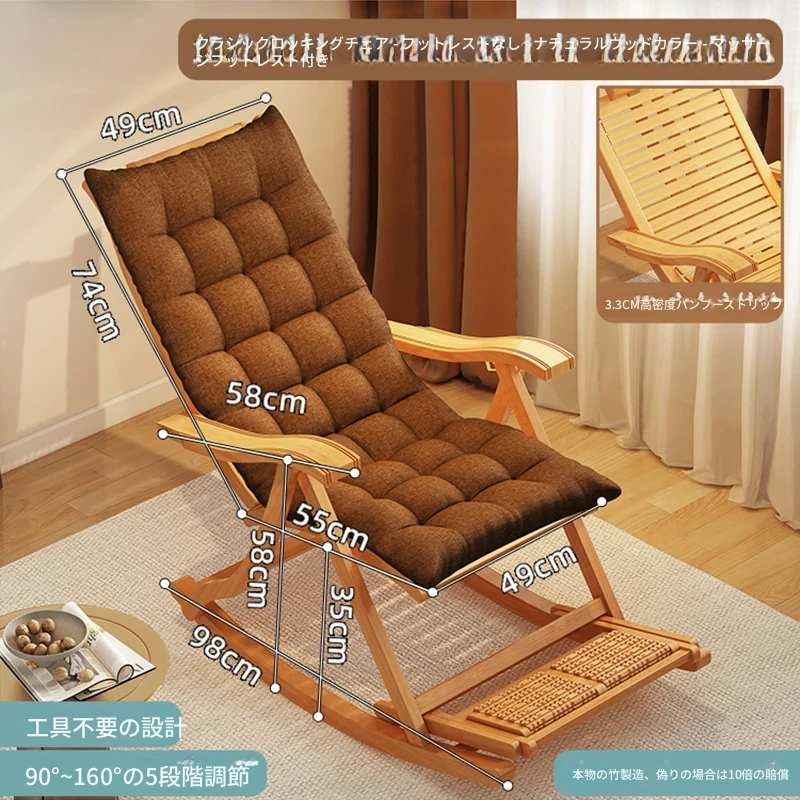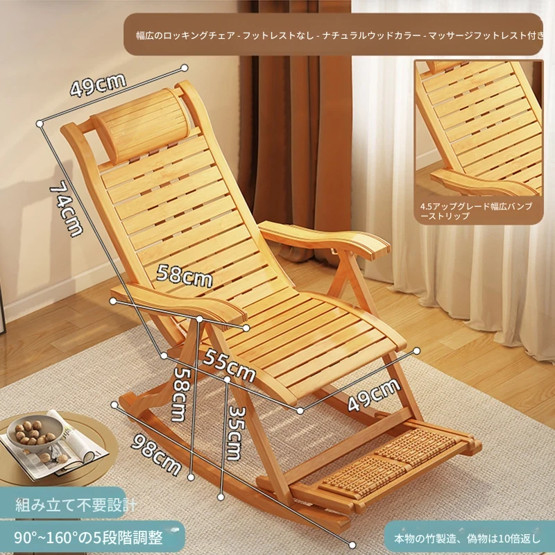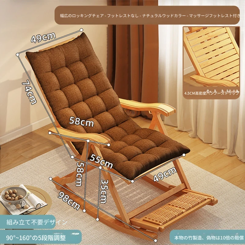 ロッキングチェア-アップグレード長モデルナチュラルウッド-厚手のスペースクッション【マッサージボール/アップグレード強化】