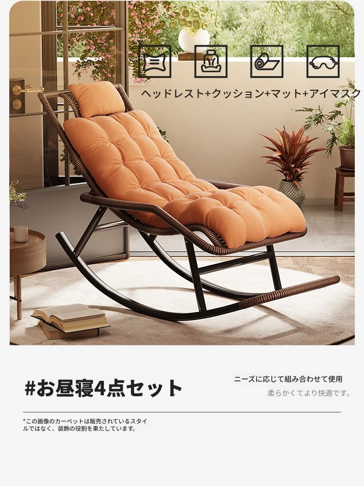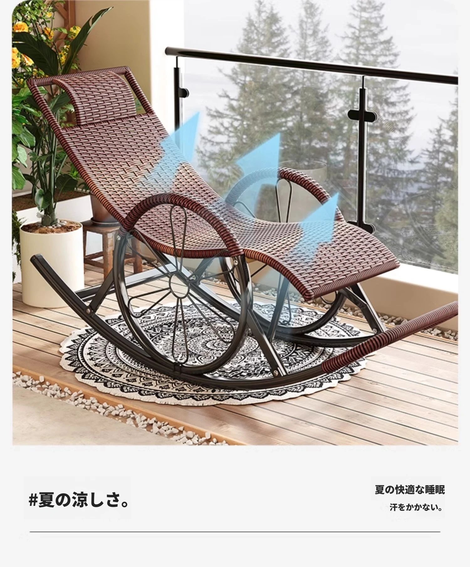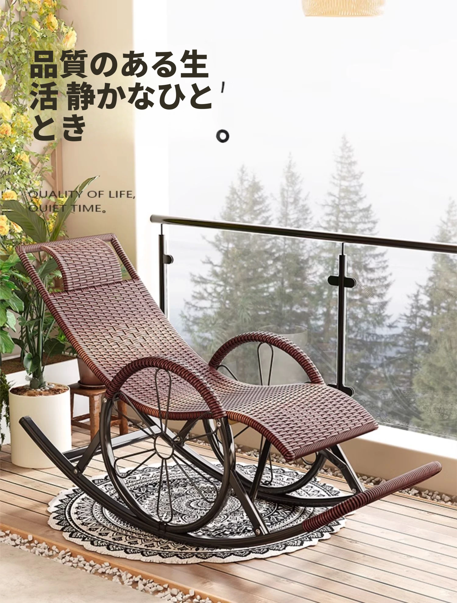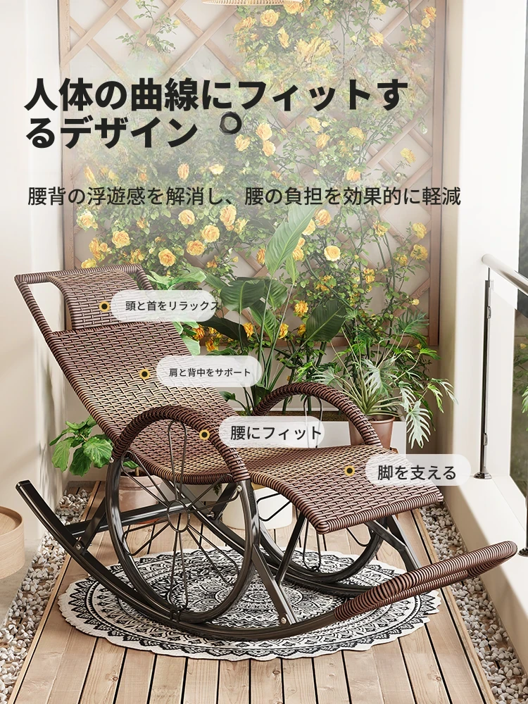 2025年新作!リラックスできるバルコニー用チェア - 大人や高齢者に最適な日向ぼっこやお昼寝にぴったりの籐製ロッキングチェア。快適なひとときをお楽しみください!