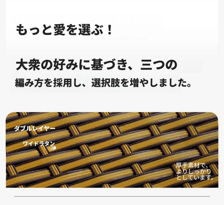 【2025新型】アップグレード版ワイドラタン二重厚手-竹模様+クッション+フロアマット+ヘッドレスト+アイマスク【品質保証 破損時全額返金】