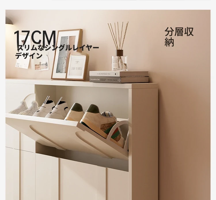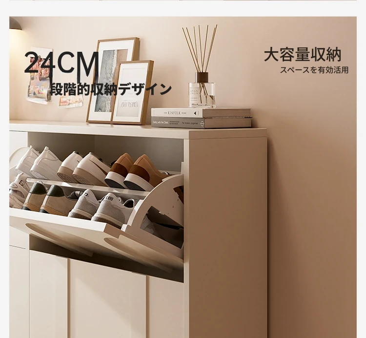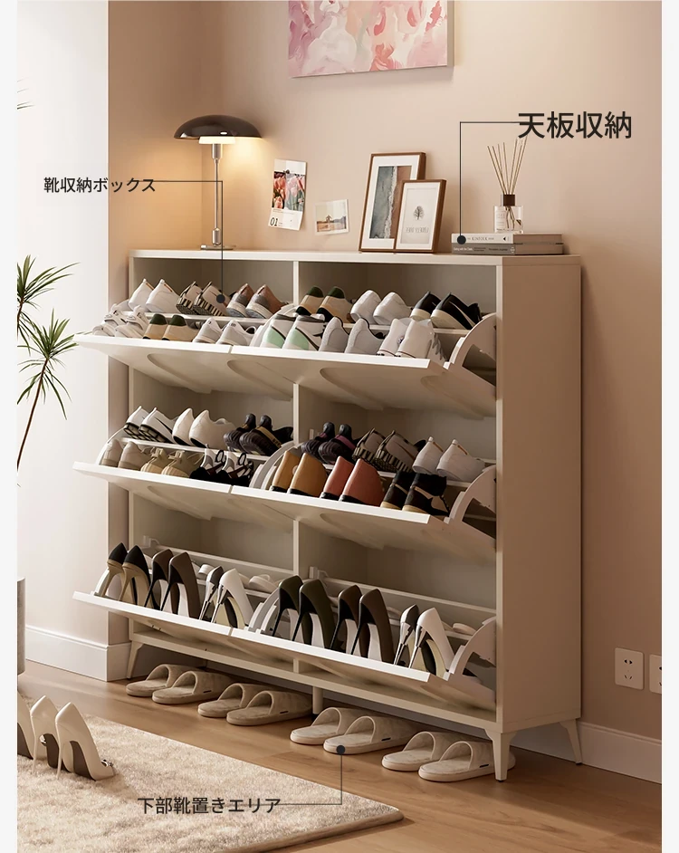 超薄デザインの多層シューズキャビネット!2025年新作、大容量で埃を防ぐ収納力抜群の簡単組み立てシューズラック。玄関をスッキリ片付けて、おしゃれな空間を演出!