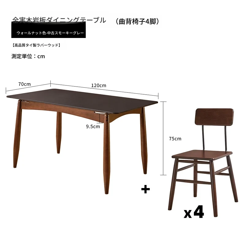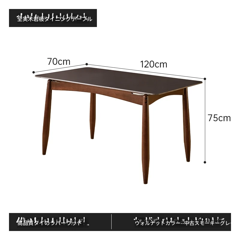 無垢岩板ダイニングテーブル 120*70 ウォールナット色【選りすぐりの無垢材 品質保証】