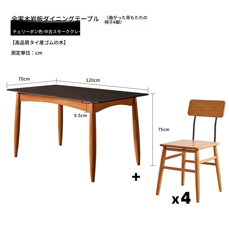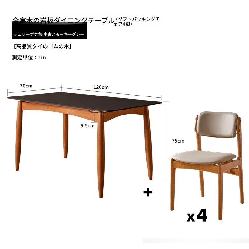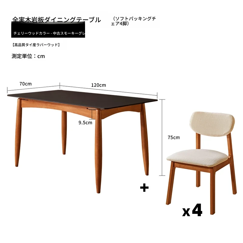 無垢岩板ダイニングテーブル 120*70 チェリーウッド色【選りすぐりの無垢材 品質保証】
