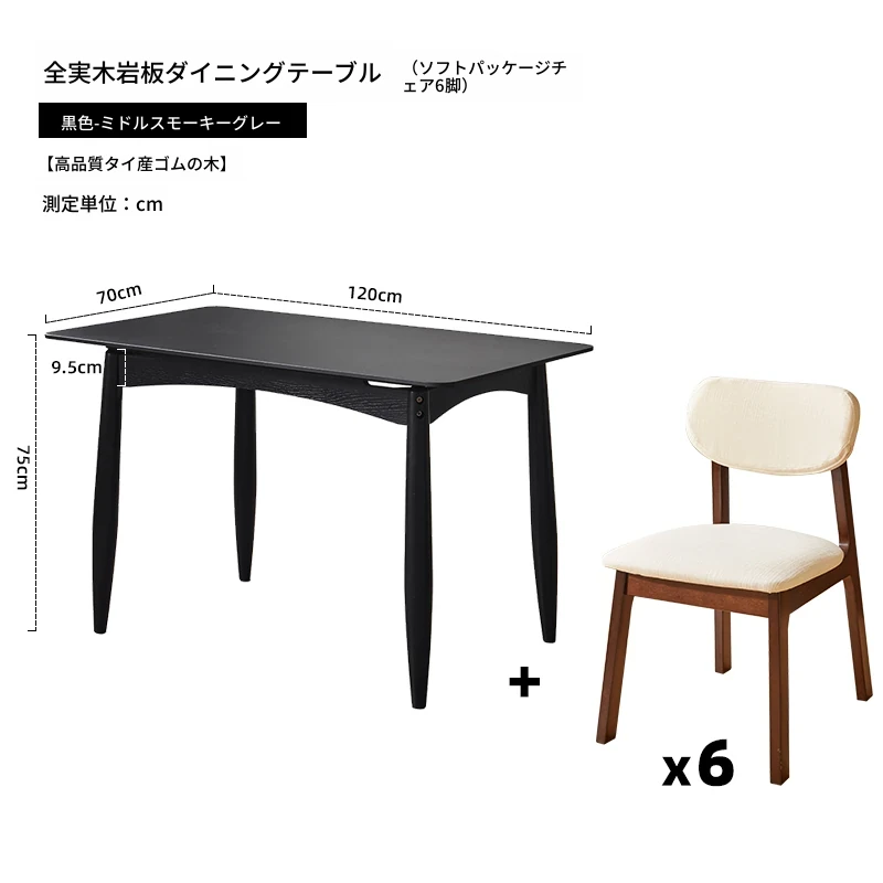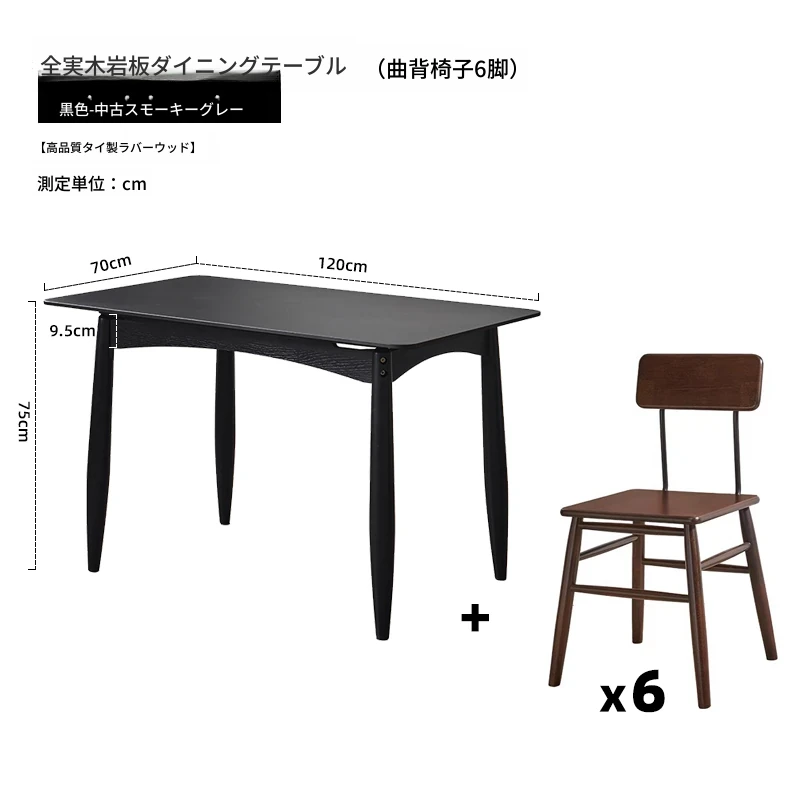 無垢岩板ダイニングテーブル+海月ダイニングチェアx6 雅黒色