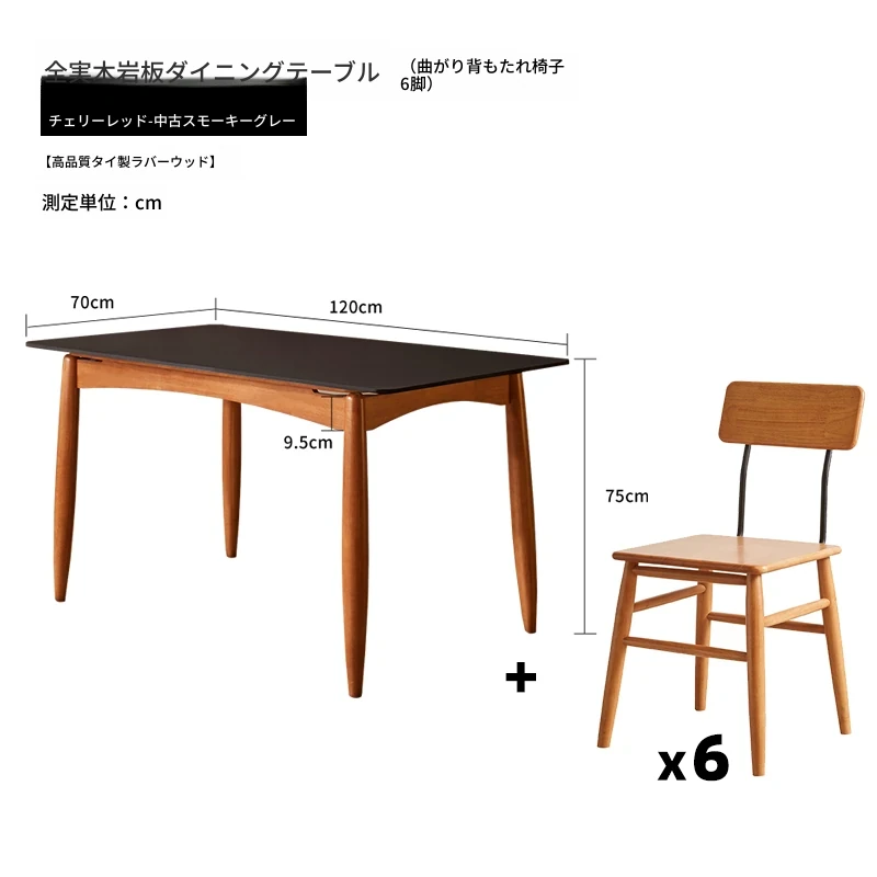 無垢岩板ダイニングテーブル+驚愕ダイニングチェアx6 チェリーウッド色