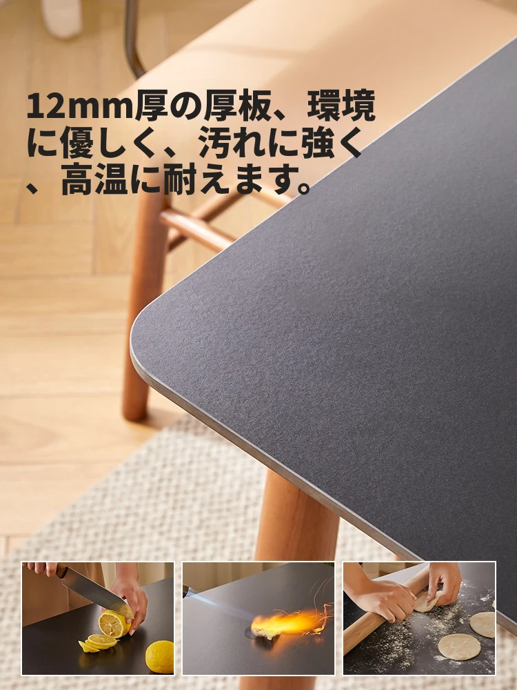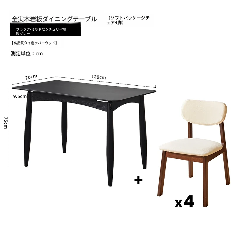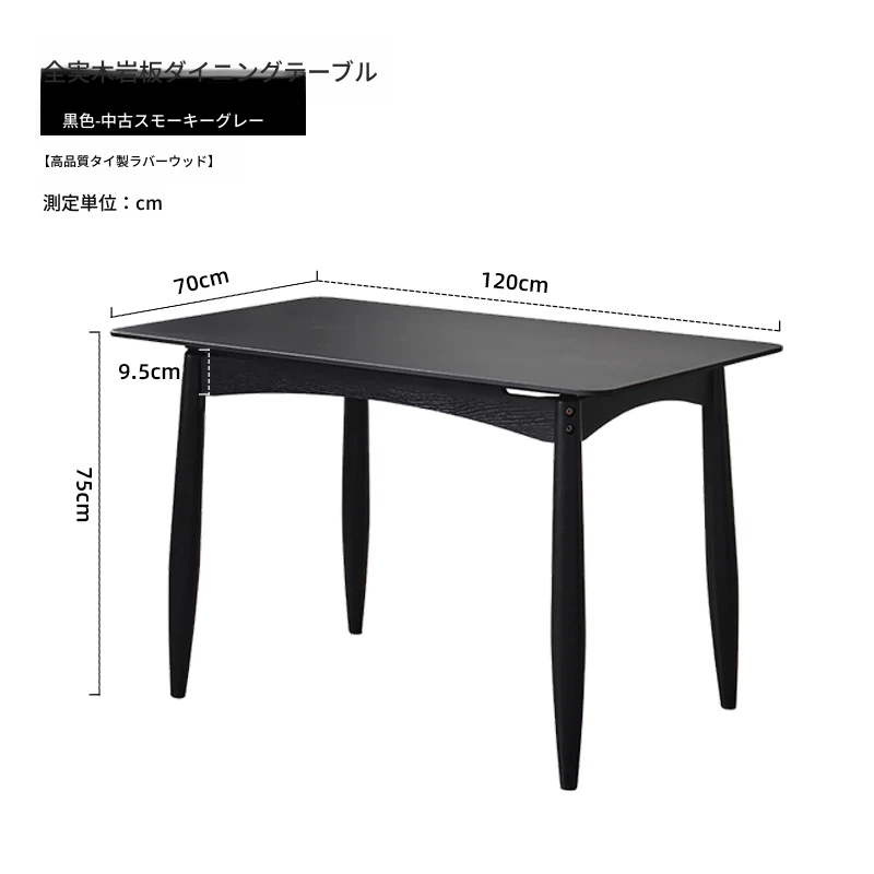 無垢岩板ダイニングテーブル 120*70 雅黒色【選りすぐりの無垢材 品質保証】