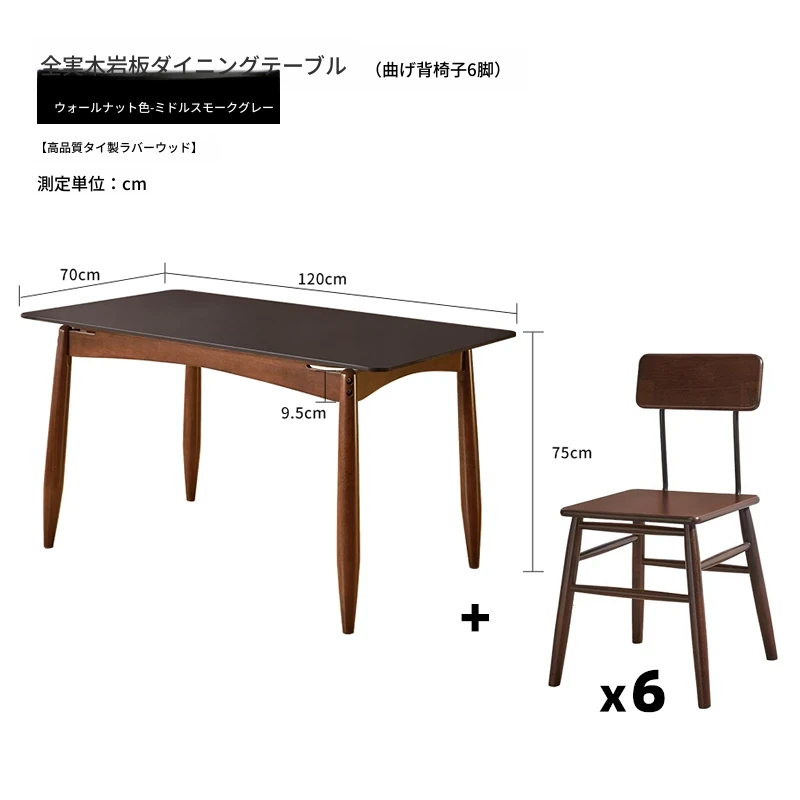 無垢岩板ダイニングテーブル+驚愕ダイニングチェアx6 ウォールナット色