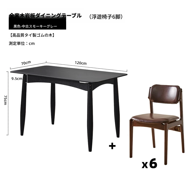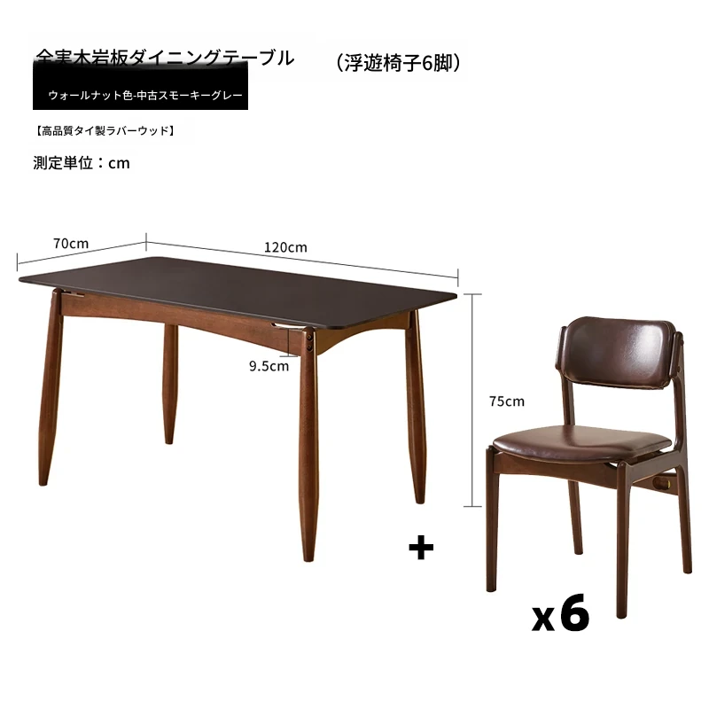 無垢岩板ダイニングテーブル+浮遊ダイニングチェアx6 ウォールナット色