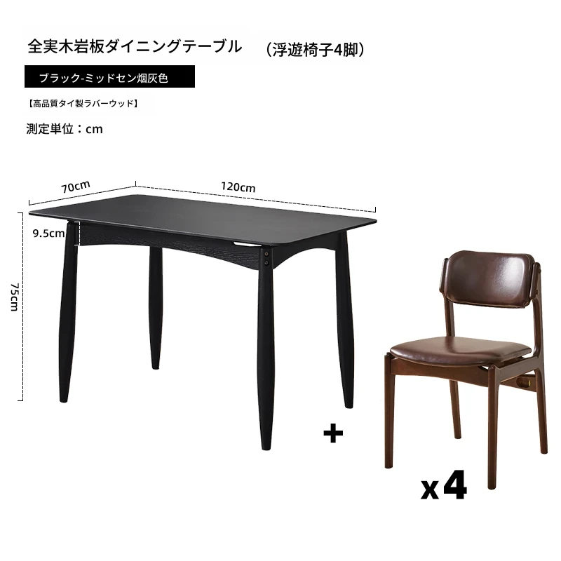 無垢岩板ダイニングテーブル+浮遊ダイニングチェアx4 雅黒色