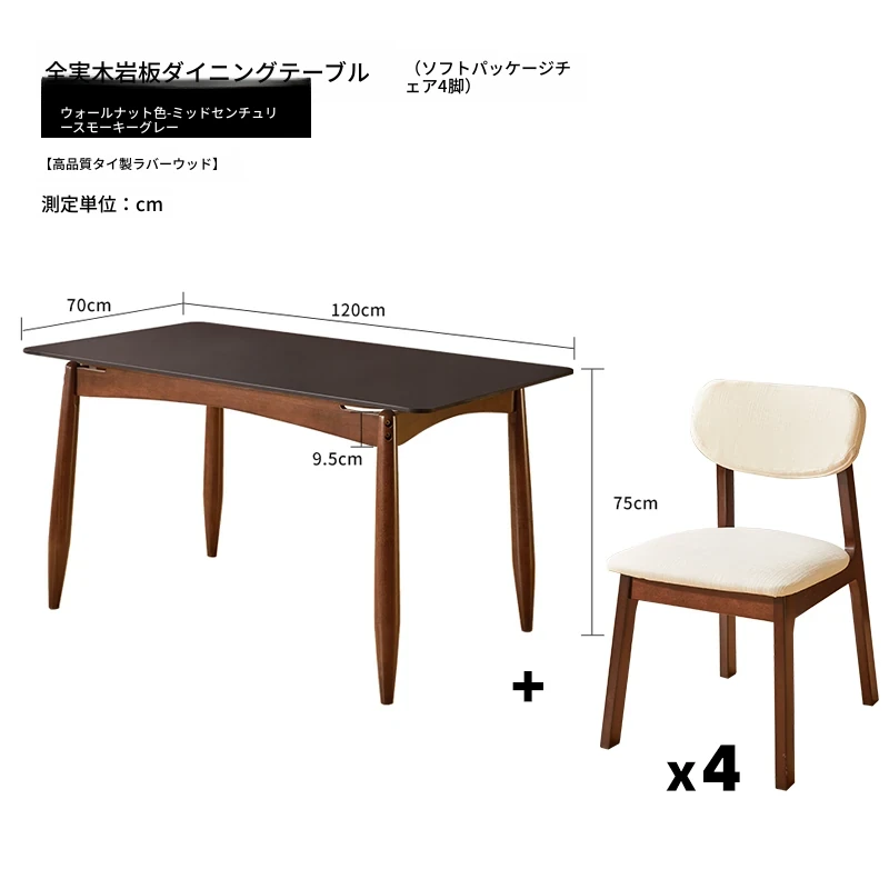 無垢岩板ダイニングテーブル+驚愕ダイニングチェアx4 ウォールナット色