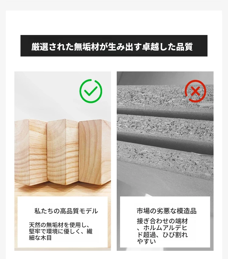 黒色脚-白色面【厳選された無垢材】【傷防止】