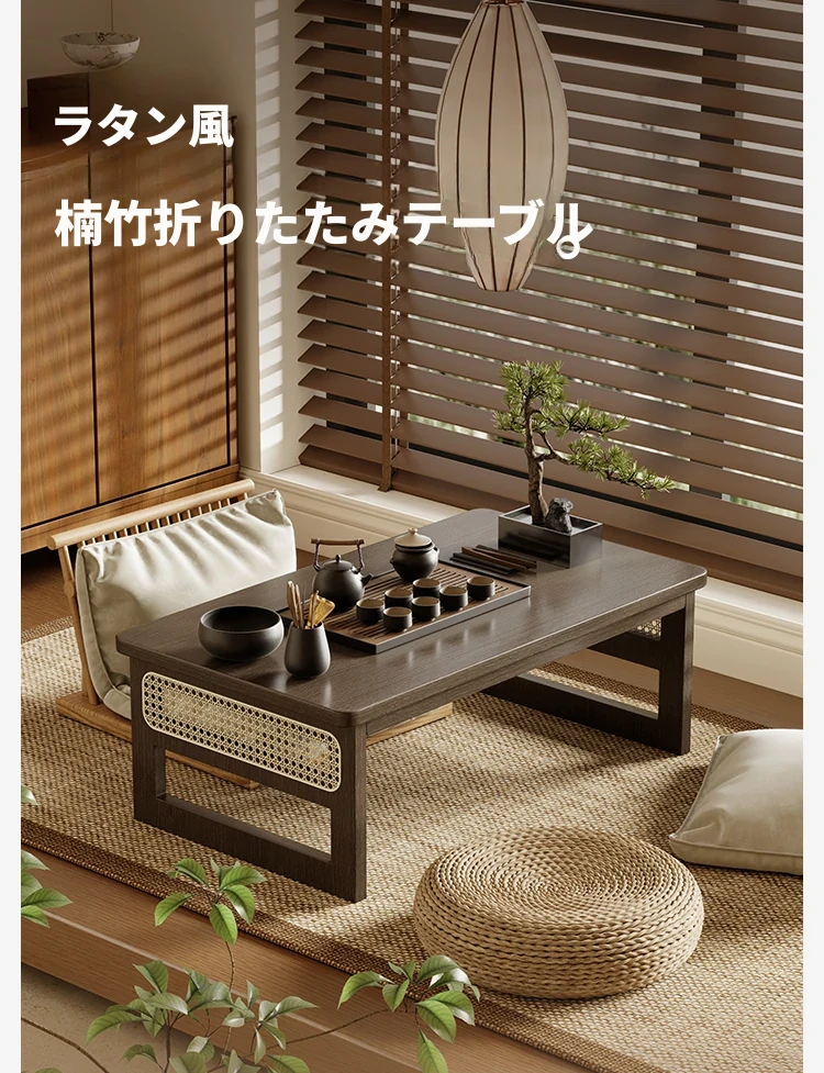 2025年新作!軽やかで高級感あふれる畳テーブル - 窓辺にぴったりな折りたたみ式の和風茶台。おしゃれな生活を演出する、心地よいひとときをお楽しみください!