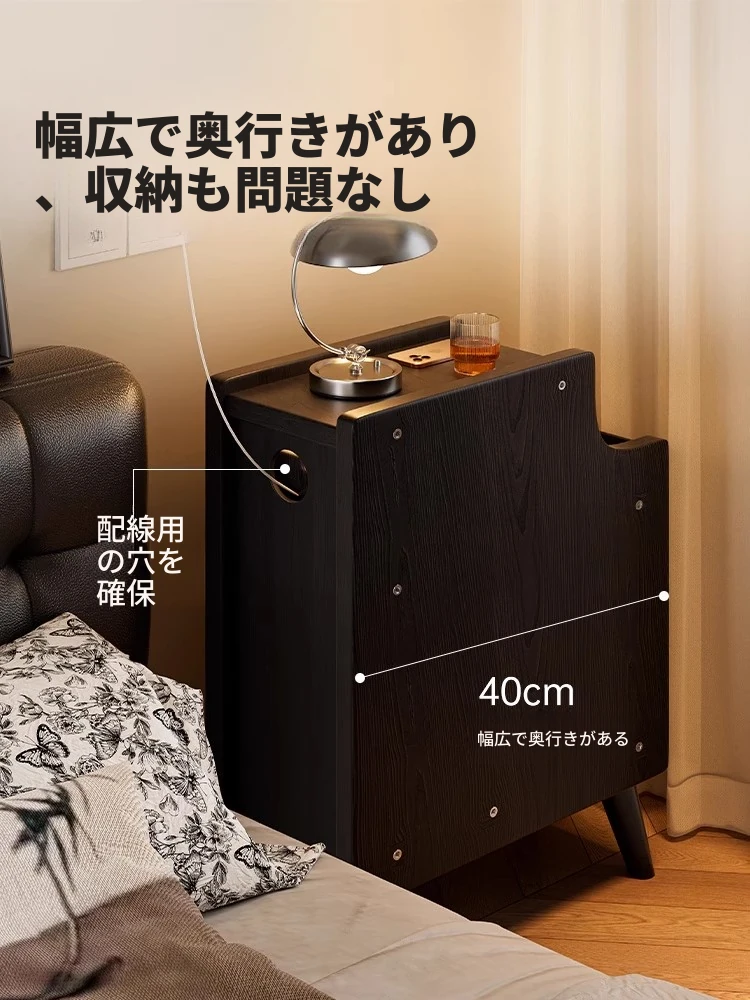 【静音スムーズな引き出し】【背面引き穴デザイン】