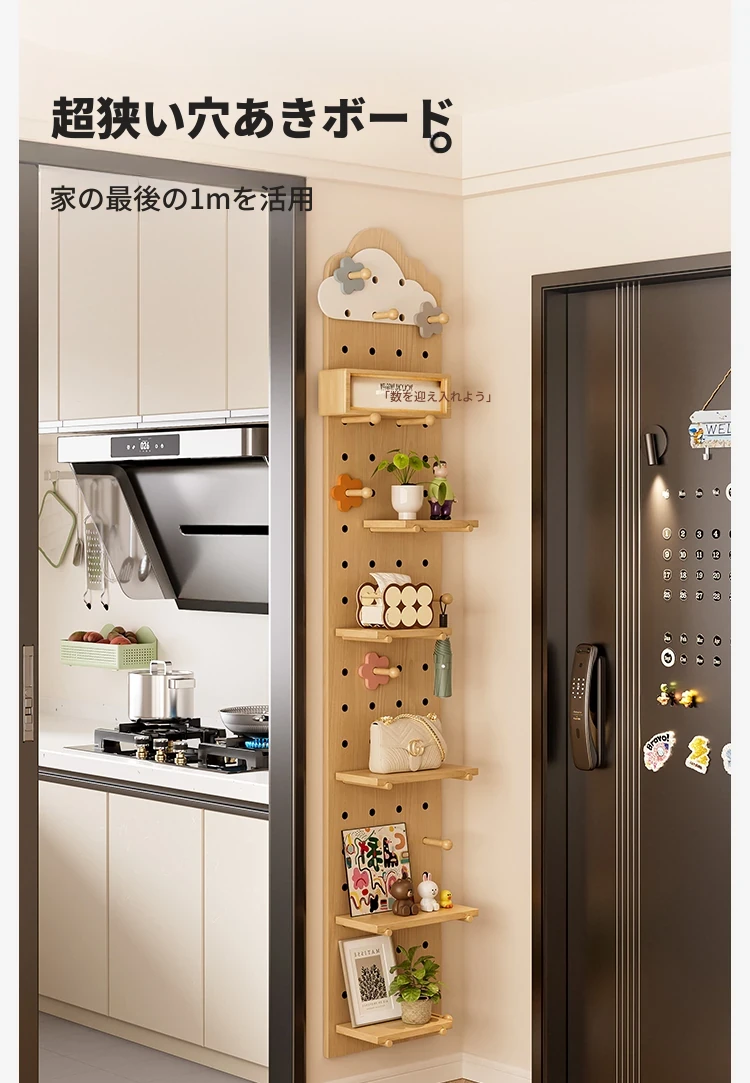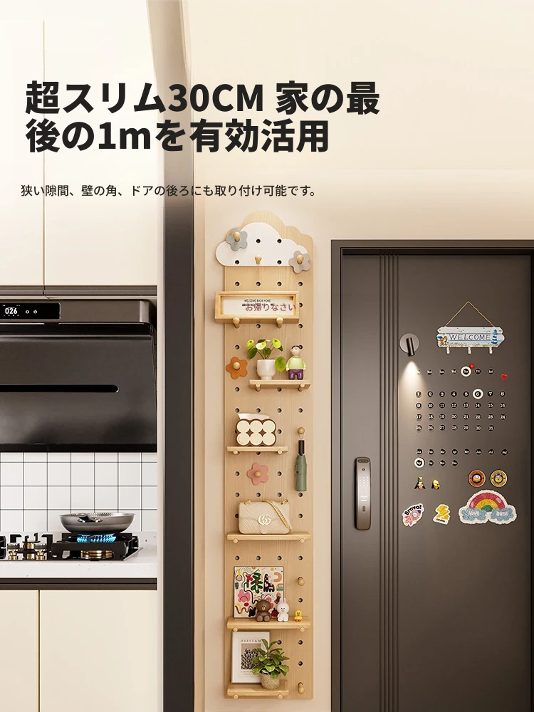 天然木材使用!30cm幅のスリムデザインで玄関や廊下にぴったり!おしゃれなディスプレイができる隙間収納ラック。実用性と美しさを兼ね備えたウォールシェルフで、生活空間をスッキリ整えましょう!
