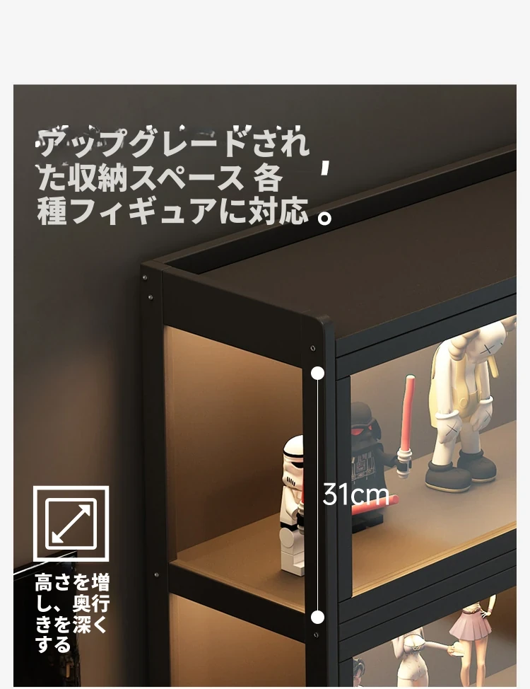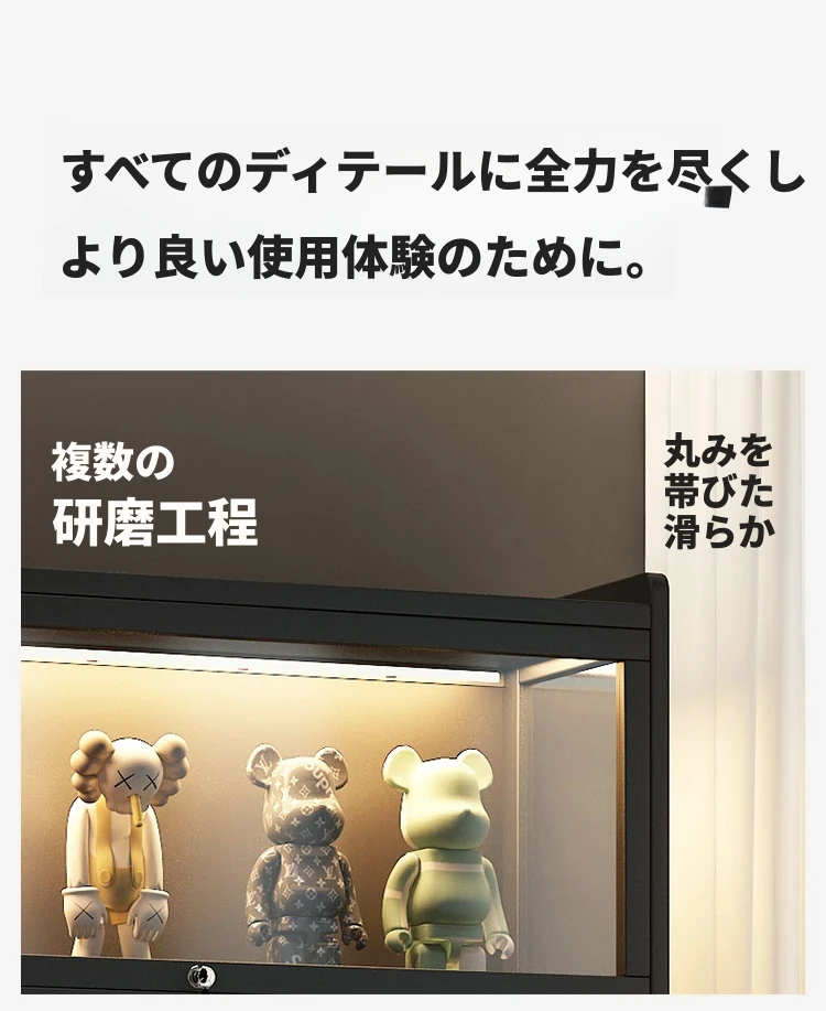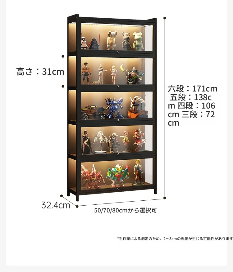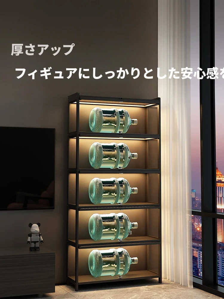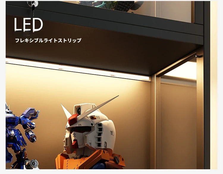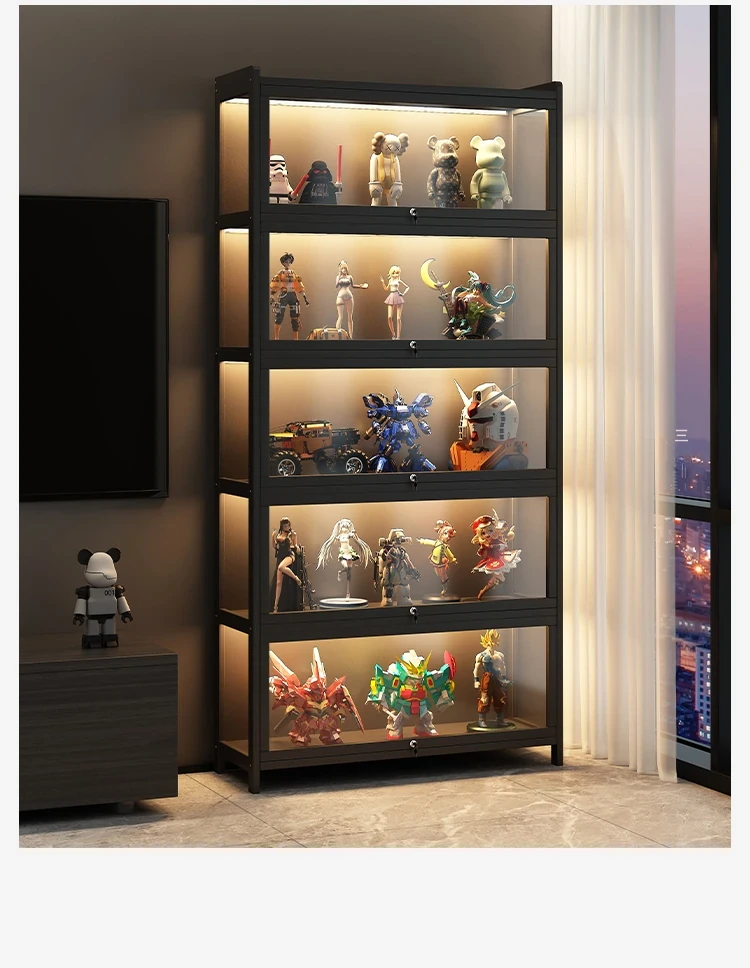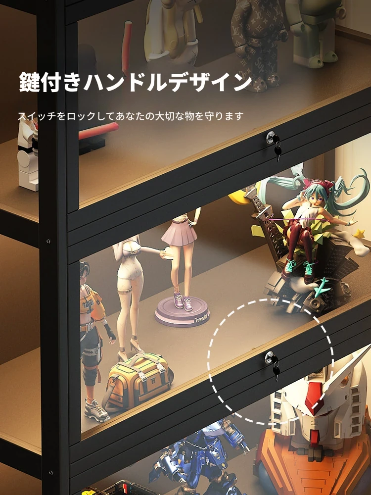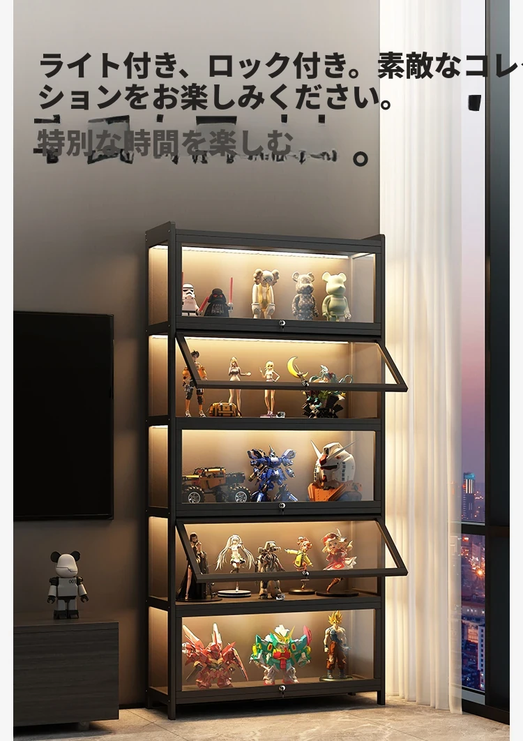 フィギュア用防塵ロック付きディスプレイキャビネット - LEDライト付き、透明アクリル製の多層収納ラックで、あなたのコレクションを美しく保管!