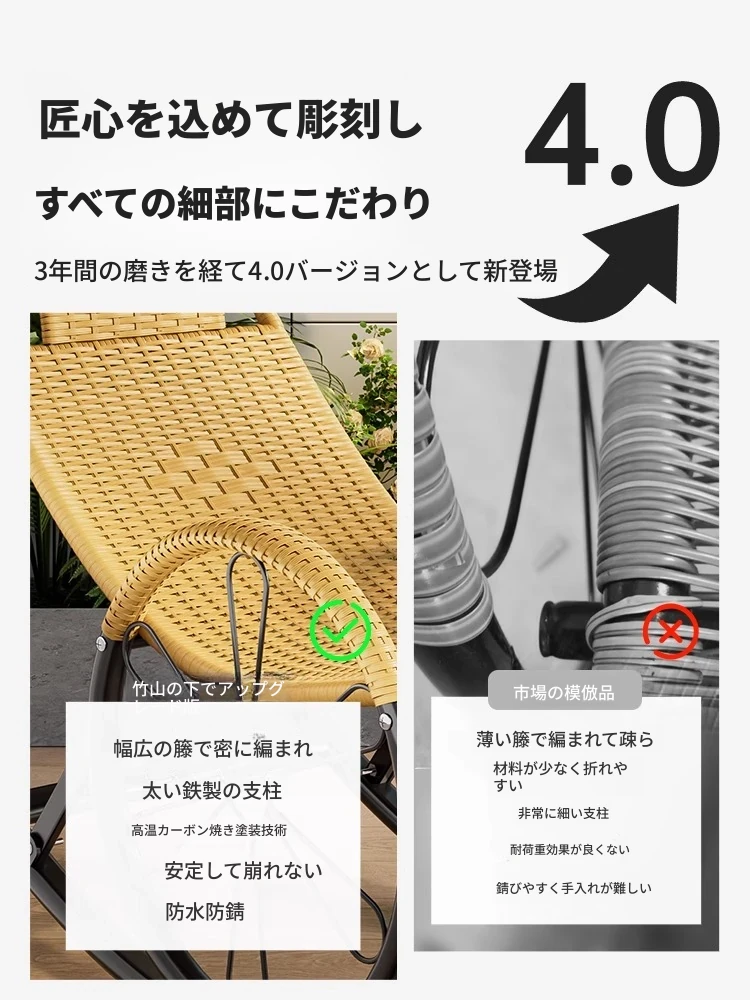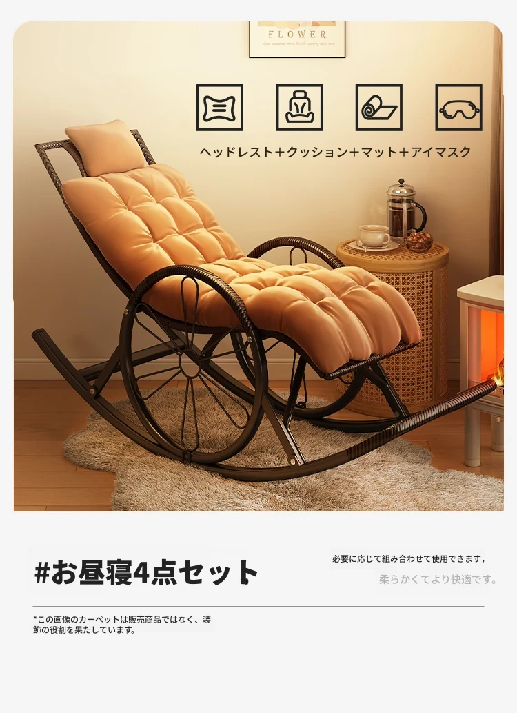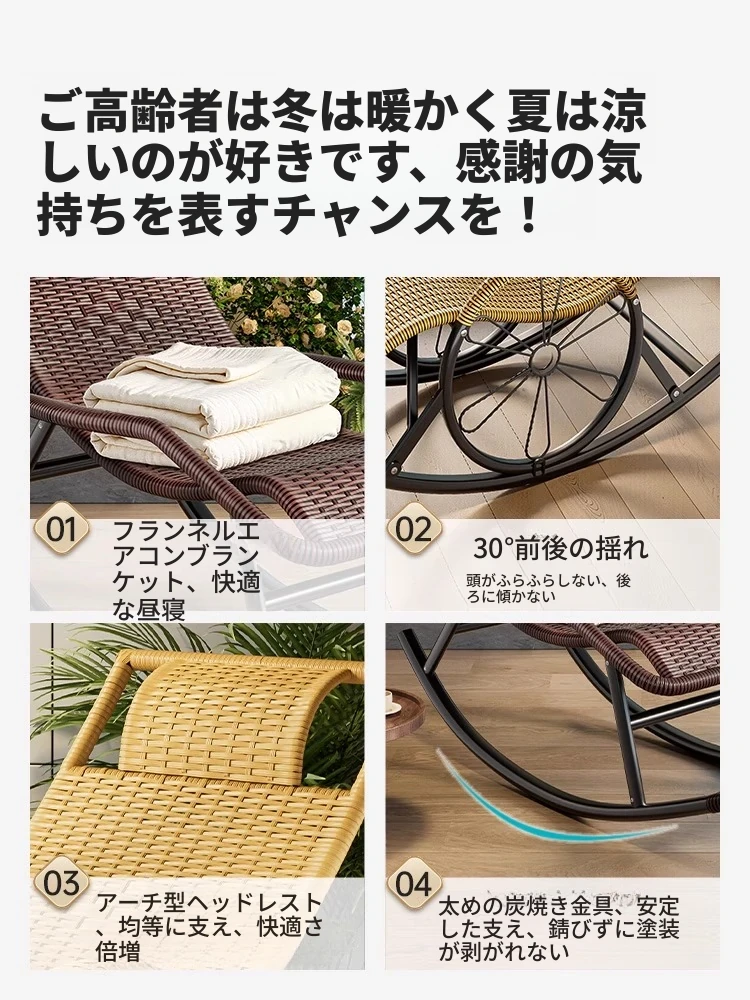 リラックスできる大人用ロッキングチェア!睡眠にも最適なバルコニー用のラウンジチェア。ゆったりとした藤製の一人掛け椅子で、くつろぎの時間を楽しめます。シニアにも優しい、快適な2WAYデザイン!