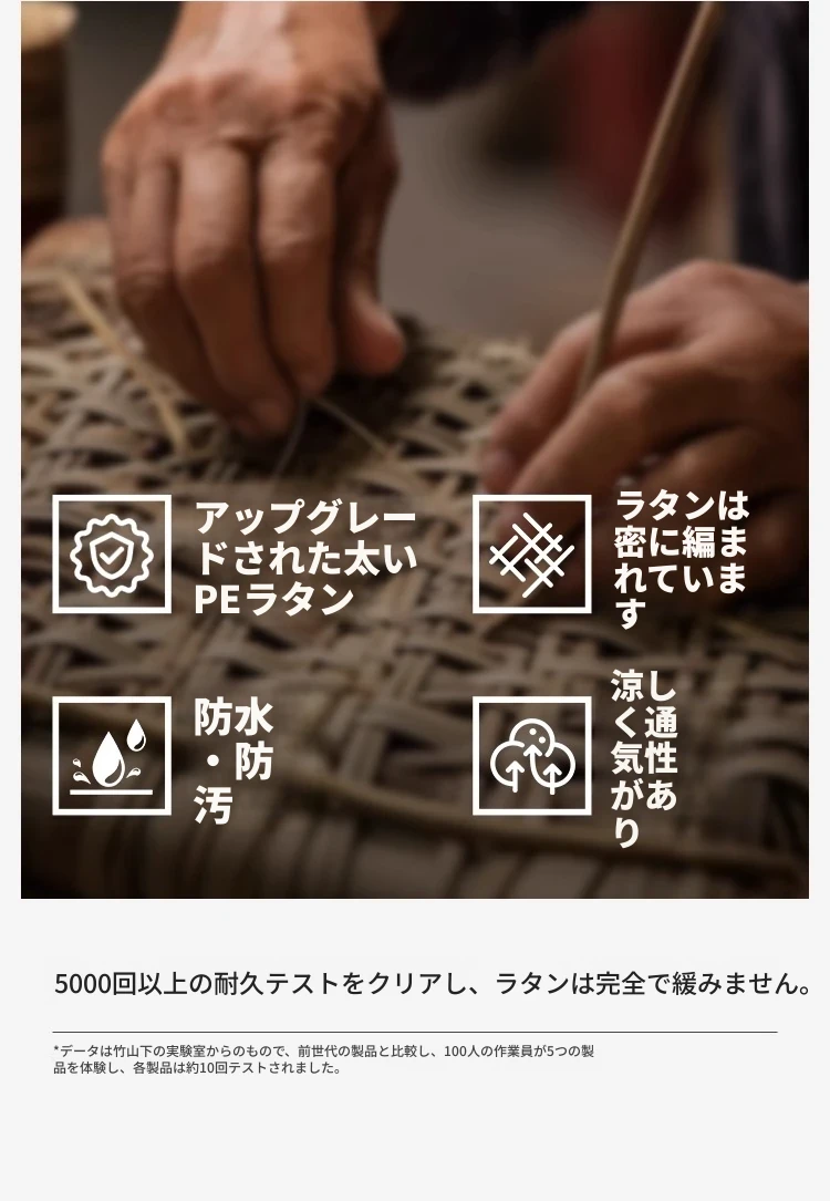 【強靭な籐材 安定して割れない】