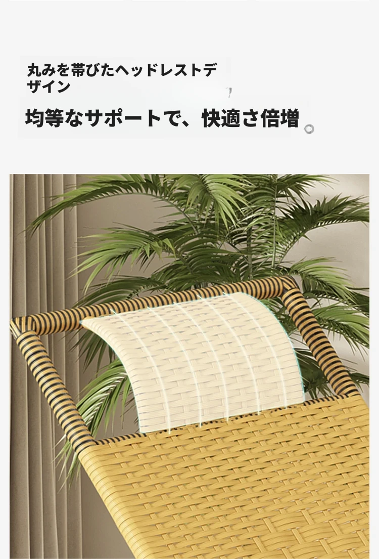 スタンダードタイプのワイドラタン二重厚型-シャンパンゴールド+クッション+ヘッドレスト【安心の品質保証 壊れた場合は全額返金】