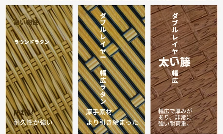 アップグレード版ワイドラタン二重厚型-ワイド竹模様+クッション+ヘッドレスト【安心の品質保証 壊れた場合は全額返金】