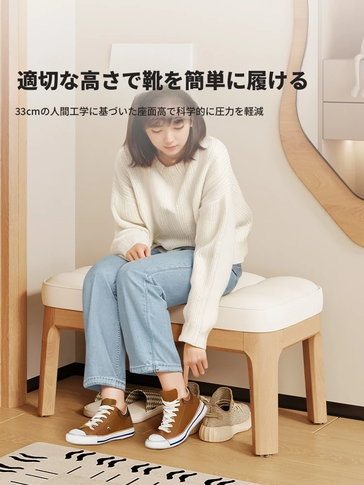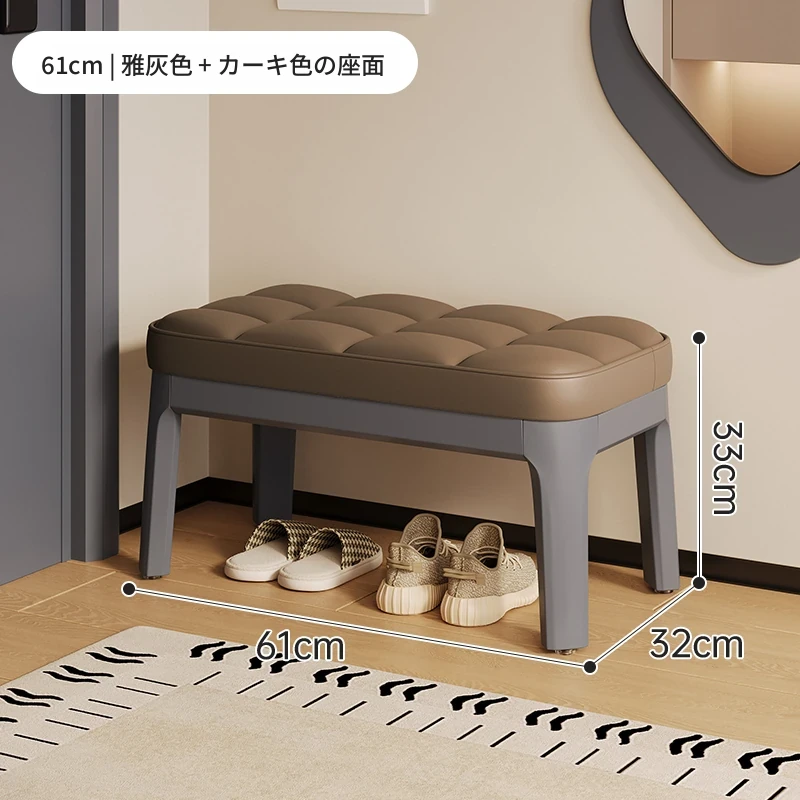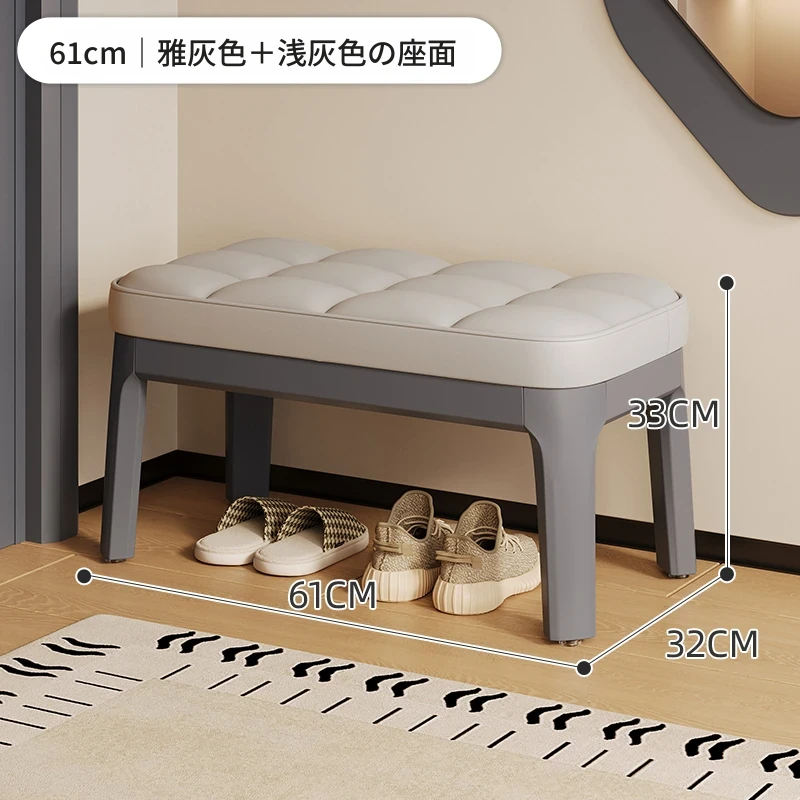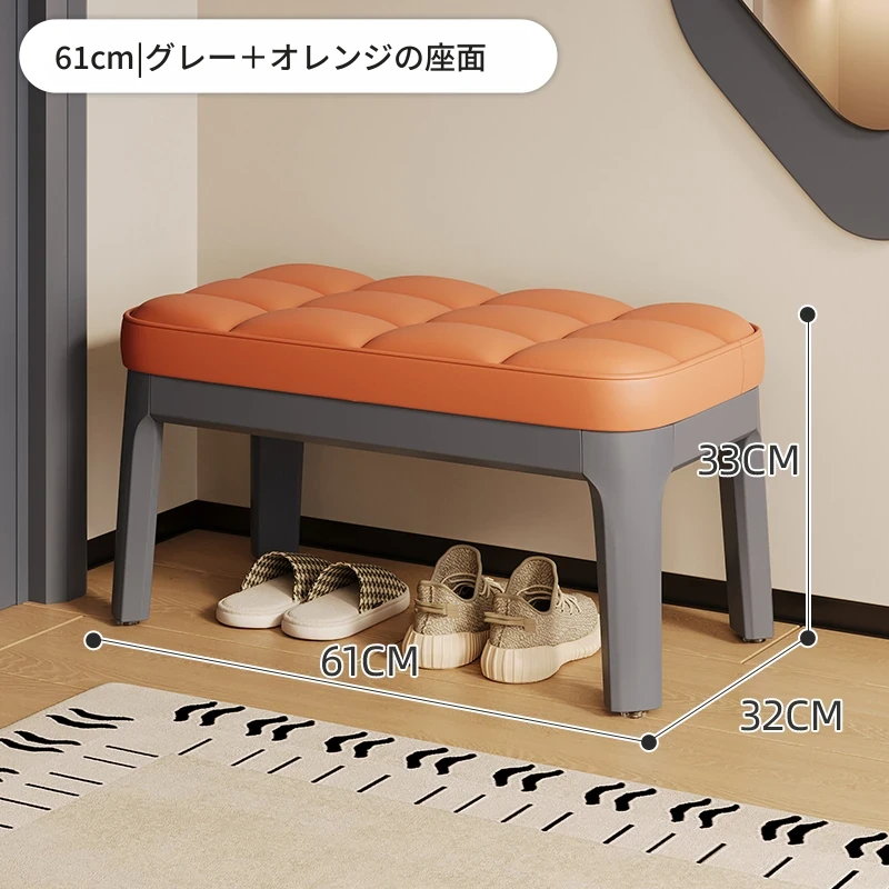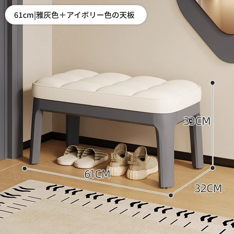玄関用スリムシューズベンチ - コンパクトでスタイリッシュな小型スツール!靴を履く時に便利で、シューズキャビネットと一体化したデザインで、狭いスペースでもおしゃれに収納可能。快適な座り心地で、お家の入口をスマートに演出!