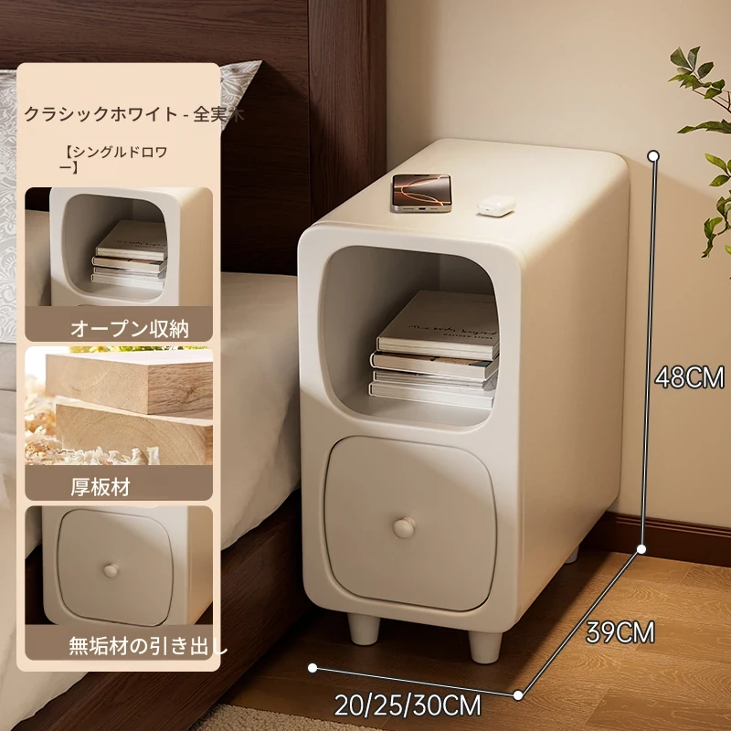 クラシックホワイト『シングル引き出し+ワイヤレス充電』⭐無垢材引き出し